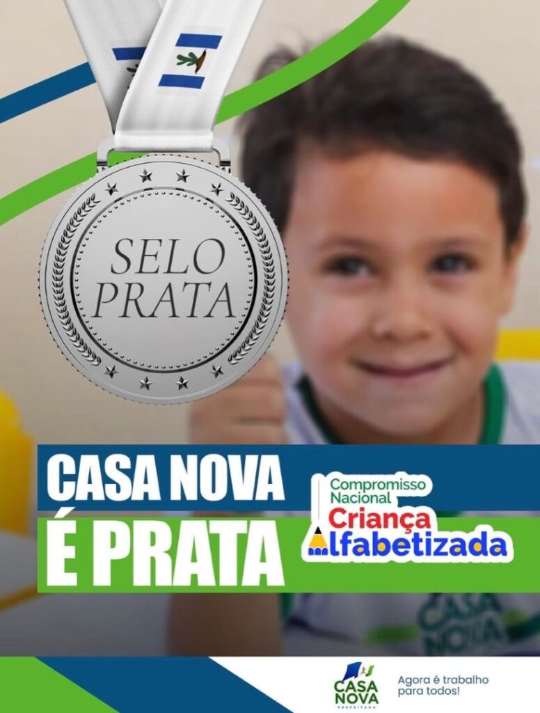 A educação de Casa Nova alcançou um novo patamar de reconhecimento nacional. O município foi premiado com o Selo Prata do Compromisso Nacional Criança Alfabetizada – edição 2026, iniciativa do Ministério da Educação que reconhece políticas públicas eficazes voltadas à alfabetização na idade certa.