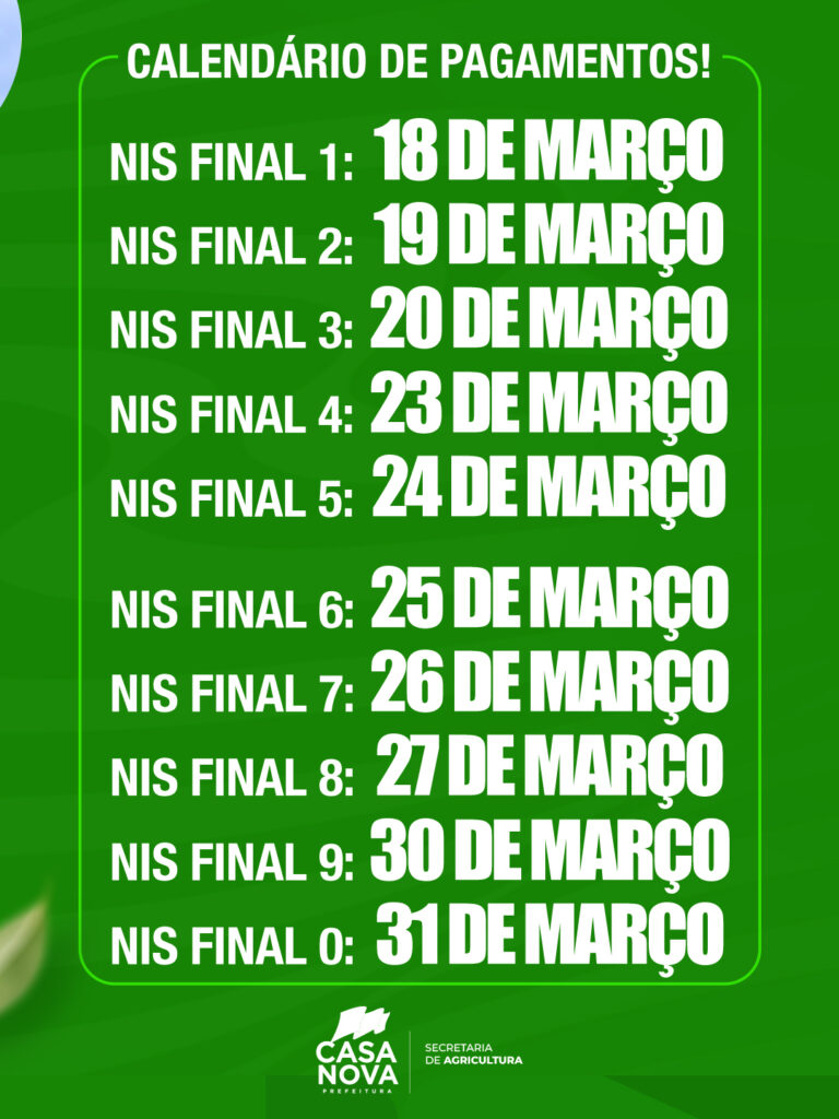 A Caixa Econômica Federal realiza o pagamento seguindo o calendário de acordo com o final do número do NIS. O Secretário de Agricultura de Casa Nova, João Honorato Castro, reforça que é fundamental manter os dados atualizados, para evitar o bloqueio do cadastro e o não recebimento do benefício.